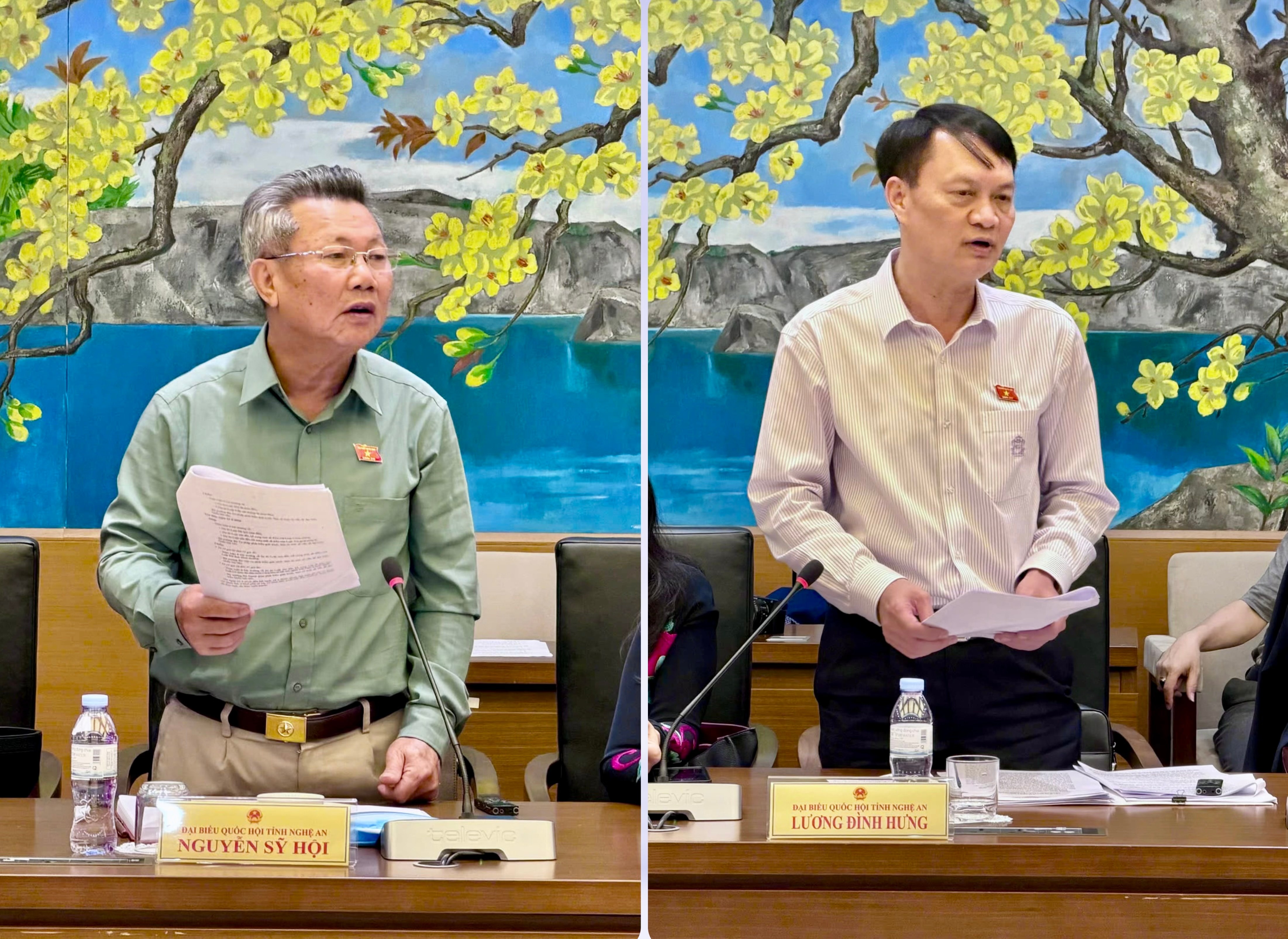 ĐBQH Nguyễn Sỹ Hội và ĐBQH Lương Đình Hưng phát biểu tại Tổ. Ảnh: Khánh Duy |