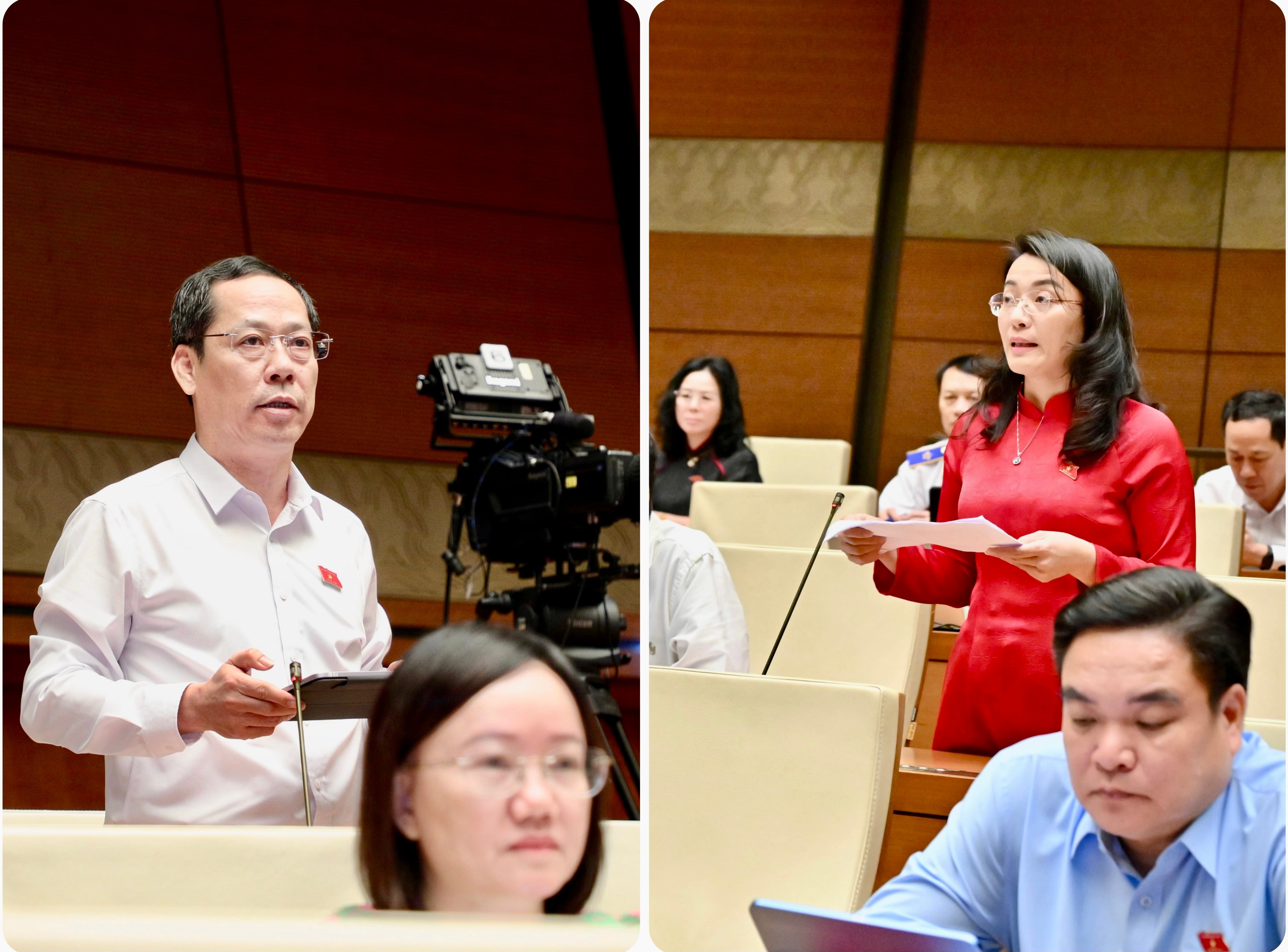 ĐBQH Trần Nhật Minh và ĐBQH Hoàng Thị Thu Trang phát biểu tại Hội trường. Ảnh: Quang Khánh |