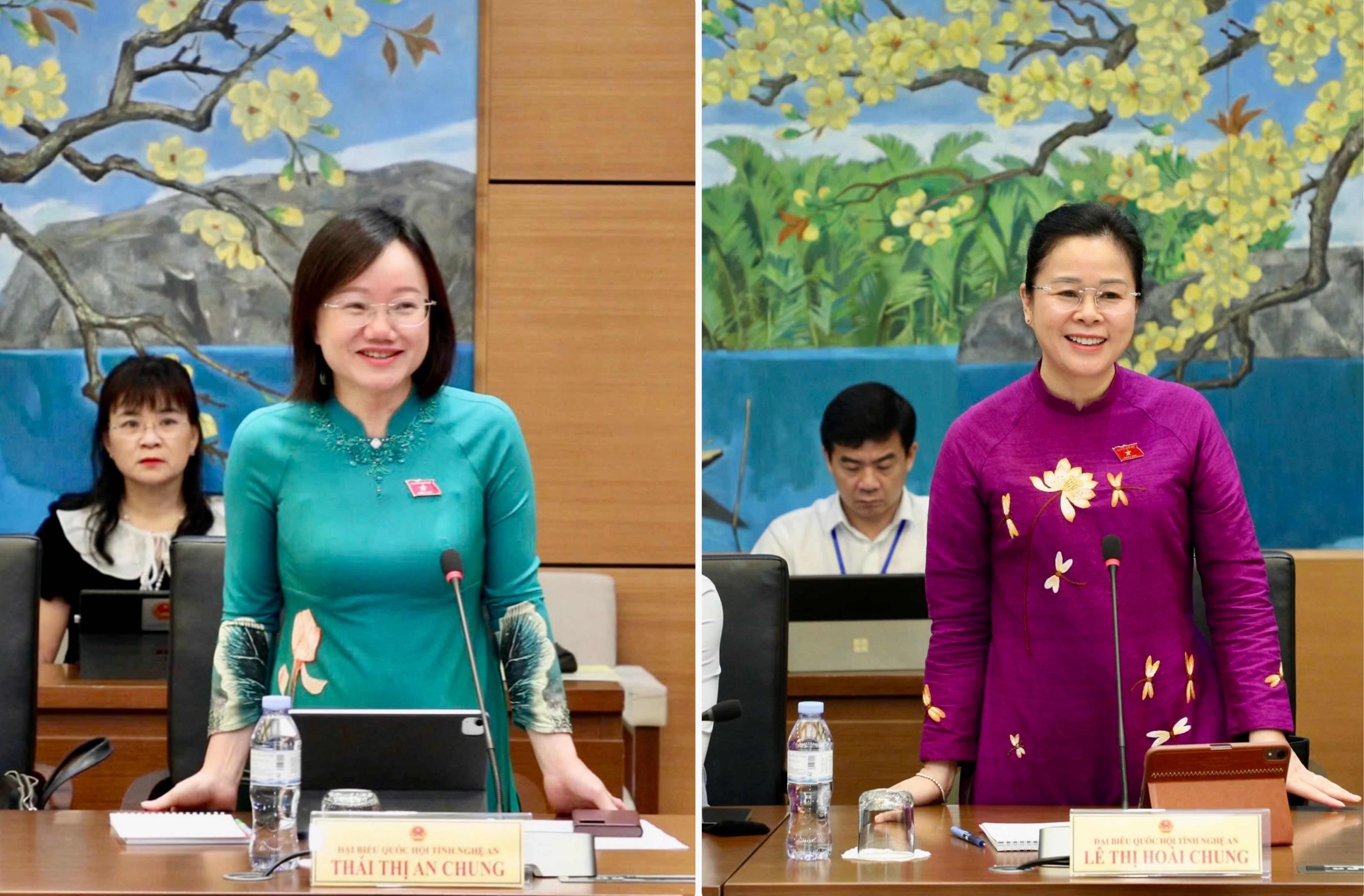 ĐBQH Thái Thị An Chung và ĐBQH Lê Thị Hoài Chung phát biểu tại Tổ. Ảnh: Khánh Duy |