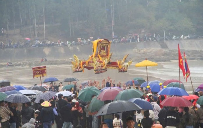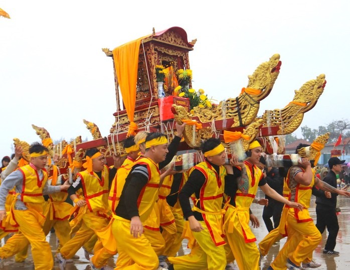 Kiệu được các thanh niên tung lên cao trong quá trình rước |