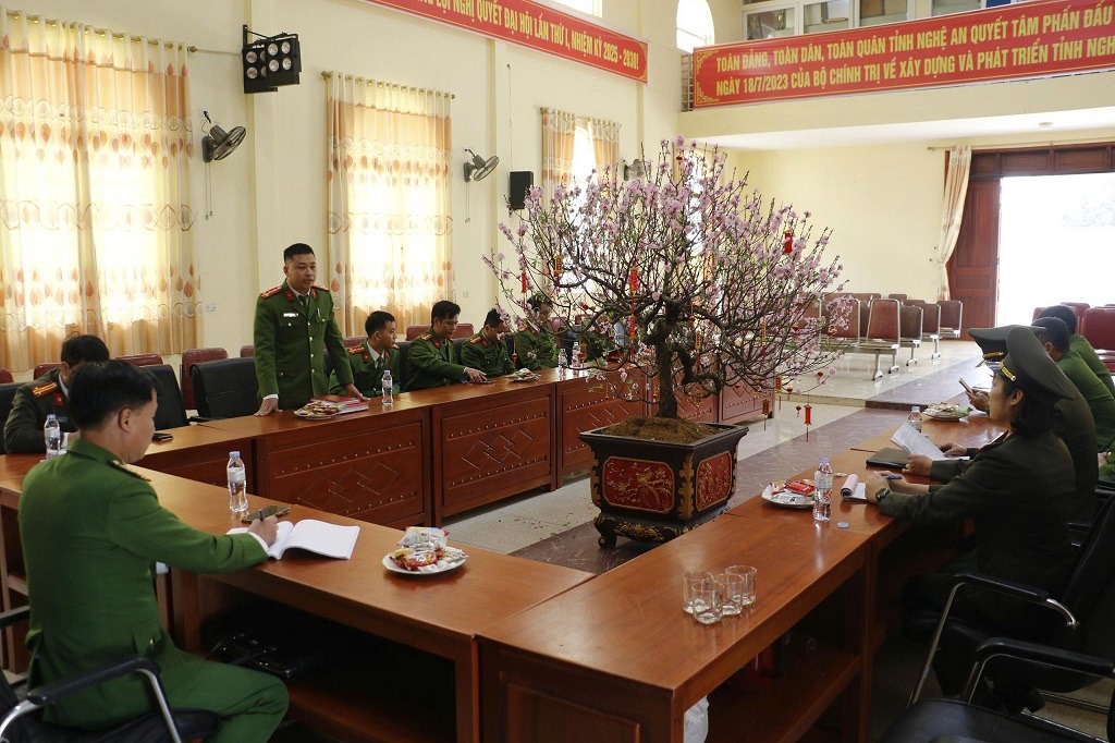 Đồng chí Đại tá Nguyễn Duy Thanh, Phó Giám đốc Công an tỉnh đến thăm, chúc Tết và kiểm tra công tác ứng trực tại Công an xã Diễn Châu |