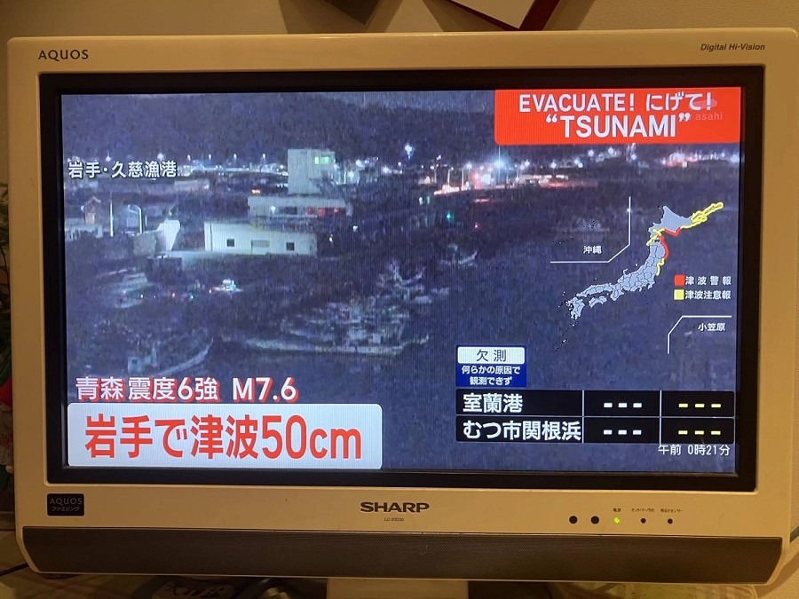 Theo phương tiện truyền thông địa phương, một cơn sóng thần cao khoảng 40 cm đã được quan sát thấy tại cảng Mutsu Ogawara ở tỉnh Aomori lúc 23h43 tối.