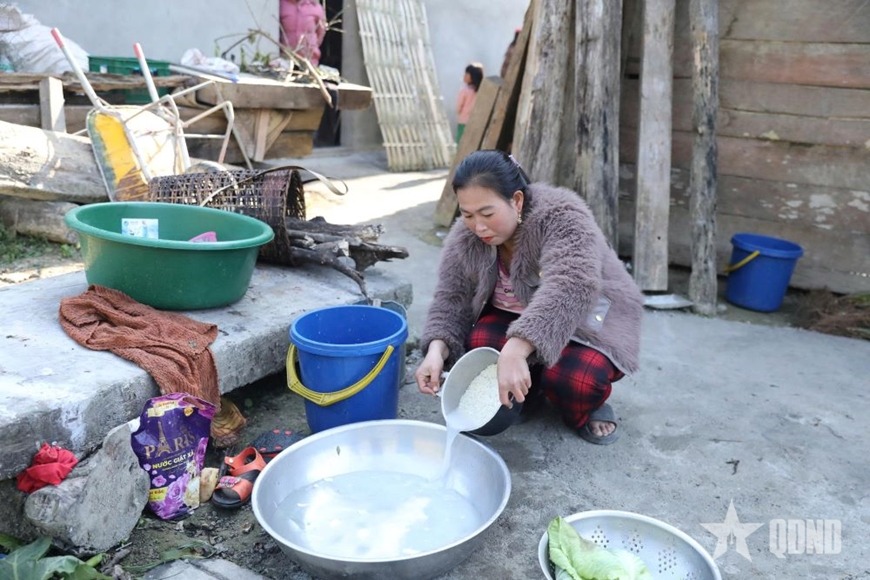 Trong gian bếp nhỏ của gia đình chị Học Thị Lan Anh, bản Xói Voi, những chiếc xô, thau từng gắn với ký ức những ngày thiếu nước nay đã được xếp gọn gàng. Chị Lan Anh chia sẻ: “Trước đây, sau mỗi trận lũ, cả nhà phải băng rừng, vượt dốc xuống khe gùi từng can nước về sinh hoạt. Nguồn nước Nhà nước làm đều bị cuốn trôi. Được các chú bộ đội hỗ trợ xây bể nước, bà con mừng lắm”.