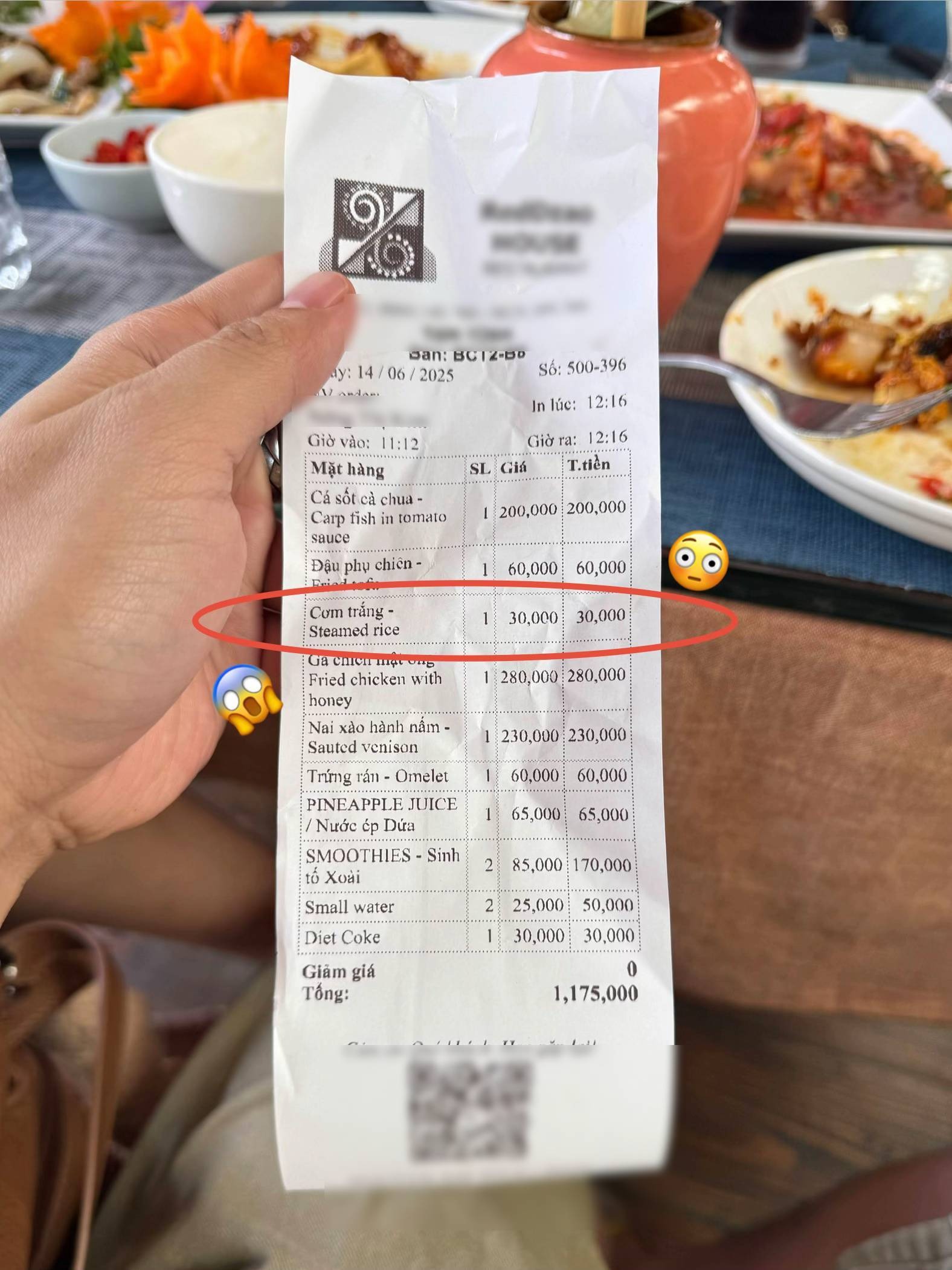 Theo chia sẻ, khi bát cơm được mang ra, tất cả đều "sốc" thật sự: phần cơm trắng đầy ú ụ trong tô lớn, đủ cho cả 5 người ăn thoải mái. Trong bài đăng, họ hài hước chú thích: "When in Vietnam: 66 Pesos rice bowl sobra pa sa 5 Pax" (Ở Việt Nam: Một tô cơm giá 66 Peso mà đủ cho 5 người ăn). Tính ra, 66 Peso tương đương chỉ khoảng 30.000 đồng Việt Nam - mức giá mà theo họ là "không tưởng" cho một phần ăn quá dồi dào như vậy. Biểu tượng vô cùng sốc và ngạc nhiên đã cho thấy cảm xúc của họ khi chứng kiến bát cơm "siêu to" này.