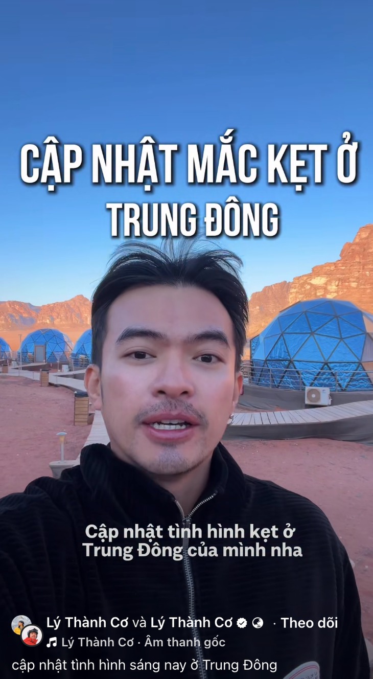 Theo blogger Lý Thành Cơ, từ ngày 28-2, trên bầu trời liên tục có tiếng máy bay phản lực. Đến thời điểm hiện tại, nam blogger vẫn đang ở sa mạc Wadi Rum (Jordan) do chuyến bay dự kiến khởi hành tại Dubai bị hủy. Lần đầu tiên "mắc kẹt" trong tình cảnh trên khiến Thành Cơ có đôi chút lo lắng.