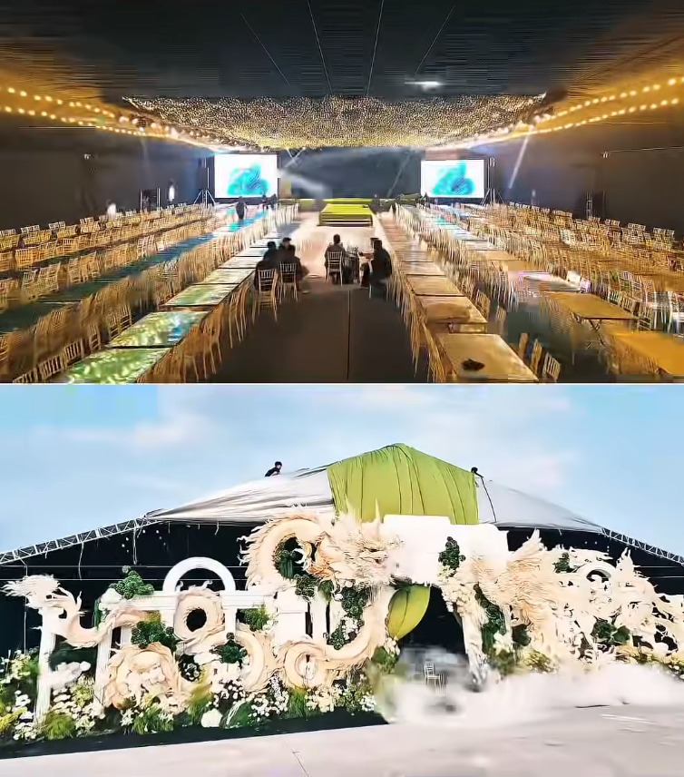 Rạp cưới của cặp đôi Đức Huy và Mù Tạt với quy mô 1000m2 đã hoàn thành với phần trang trí vô cùng ấn tượng, sẵn sàng đón khách dự lễ cưới vào 17h30 chiều nay 14/3.