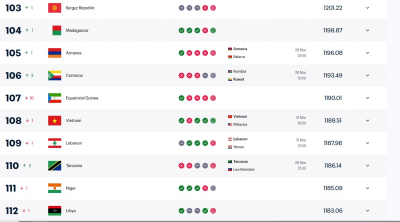 Thực tế, thứ hạng 108 thế giới hiện tại phản ánh đúng trạng thái “chưa cập nhật” của hệ thống, chứ không phải sự suy giảm về phong độ hay năng lực chuyên môn của ĐTQG Việt Nam. Nếu tính đủ điểm từ trận thắng Malaysia, nhiều khả năng thầy trò HLV trưởng sẽ được cải thiện vị trí trong lần công bố tiếp theo của FIFA.