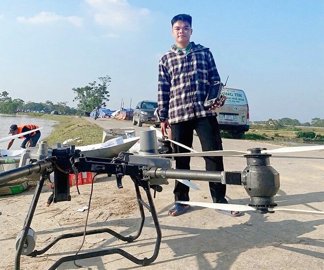 Trước đây, Phát đã có nhiều kinh nghiệm sử dụng drone trong lĩnh vực nông nghiệp và vận chuyển hàng hóa tại Bắc Ninh và Thái Nguyên. Chính những trải nghiệm thực tế này giúp anh thành thạo kỹ thuật điều khiển, xử lý linh hoạt trong nhiều tình huống khác nhau, từ bay ở địa hình bằng phẳng đến những khu vực khó tiếp cận. Nhờ vậy, khi tham gia hỗ trợ vùng lũ, anh có thể vận hành thiết bị một cách hiệu quả, đảm bảo hàng cứu trợ đến đúng nơi.