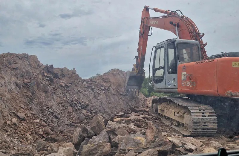 Video: Nhà đầu tư huy động máy móc ồ ạt đào đất san lấp mặt bằng để phân lô, bán đất nền.