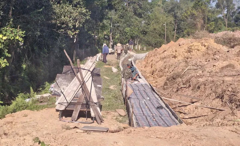 Không chỉ san lấp đất, tại hiện trường còn có một nhóm thợ tiến hành xây mương thoát nước. Qua quan sát, vị trí xây mương vốn đã có mương thoát nước bằng bê tông, nhưng giờ đây mương được nhà đầu tư nâng cấp, xây dựng mới và kết hợp làm đường để tạo thêm mặt tiền đẹp cho các lô đất.