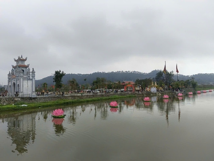 Người dân mang theo đồ lễ, hoa vào đền thắp hương |