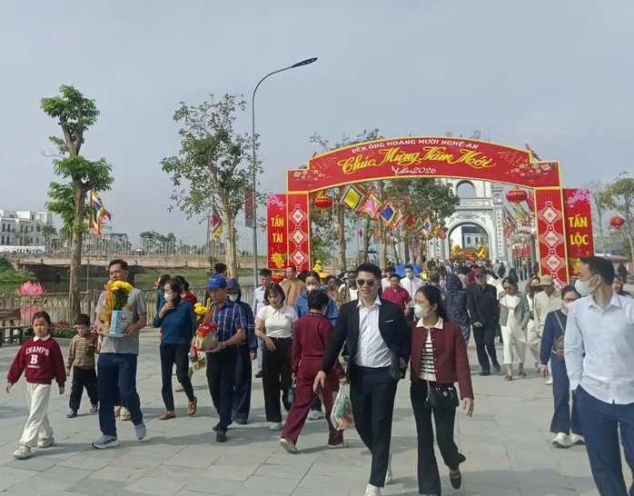 Từ ngày mùng 1 đến mùng 5 Tết Bính Ngọ 2026, mỗi ngày có hàng chục ngàn người dân, du khách nô nức đi lễ tại đền ông Hoàng Mười ở xã Hưng Nguyên, tỉnh Nghệ An. Theo ghi nhận, các tuyến đường trước đền và trong khuôn viên di tích lúc nào cũng chật kín người dâng hương, cầu tài lộc, bình an cho năm mới.