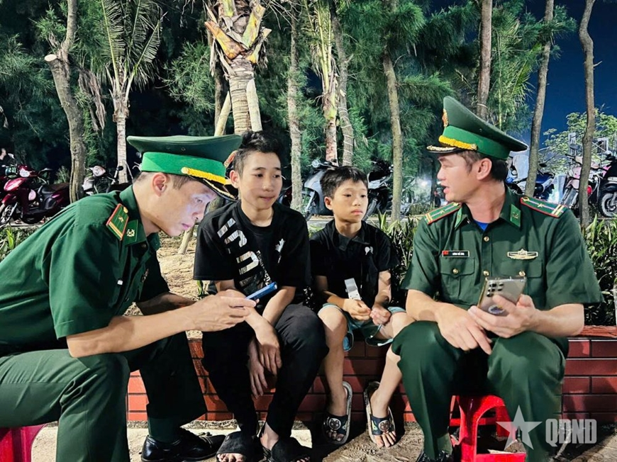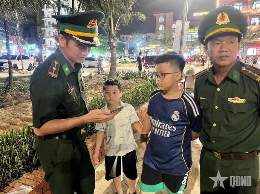Các cháu nhỏ bị lạc tìm đến các chú Bộ đội Biên phòng nhờ giúp đỡ. |