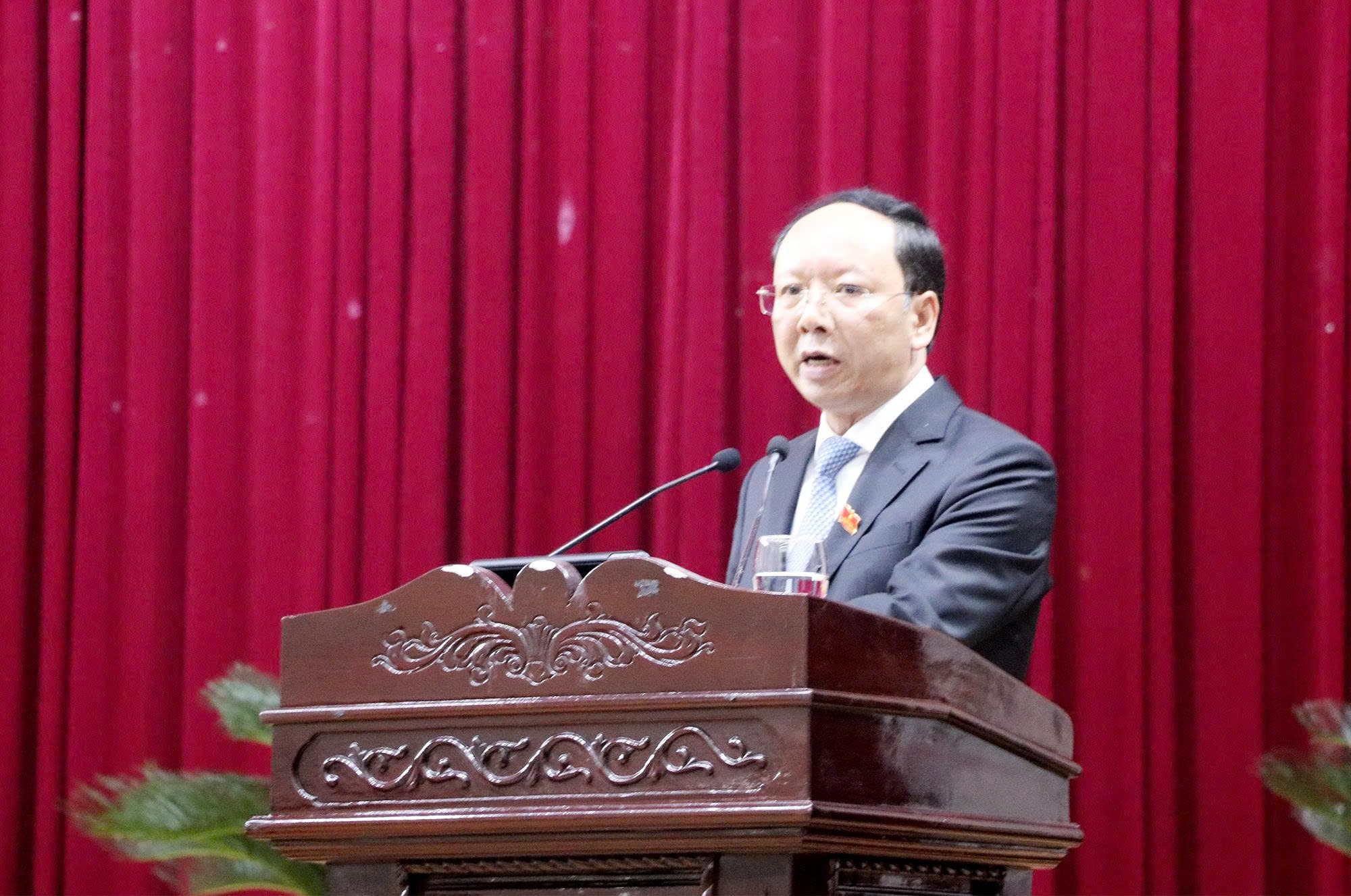 Phó Bí thư Thường trực Tỉnh ủy, Chủ tịch HĐND tỉnh Hoàng Nghĩa Hiếu phát biểu khai mạc kỳ họp |