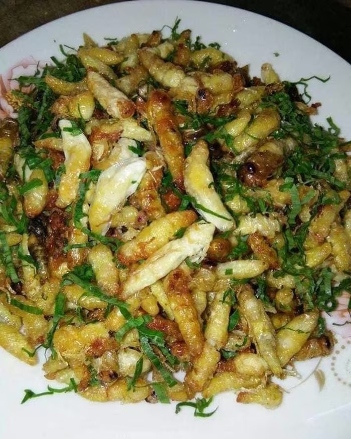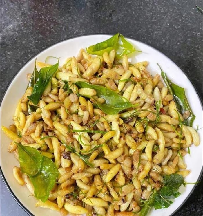Điểm làm nên sức hấp dẫn của món ăn này nằm ở hương vị rất riêng. Khi được chế biến đúng cách, nhộng ong có vị béo ngậy nhưng không ngấy, bùi bùi, hơi ngọt tự nhiên và gần như không có mùi tanh. Người dân thường chế biến thành nhiều món như xào lá chanh, rang giòn hoặc nấu cháo, trong đó phổ biến nhất là nhộng ong xào lá chanh – cách làm giúp giữ trọn độ béo và dậy mùi thơm đặc trưng. Khi ăn, lớp vỏ ngoài hơi giòn nhẹ, bên trong mềm và ngậy, tạo cảm giác khá thú vị với người lần đầu thưởng thức.