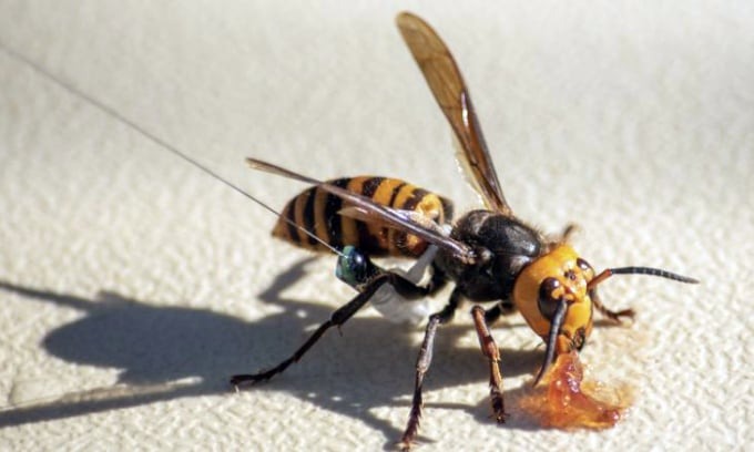Ong bắp cày khổng lồ châu Á (tên khoa học là Vespa velutina) có nọc độc cực mạnh, gây đau đớn dữ dội và có thể dẫn đến tử vong. Ảnh: AP |