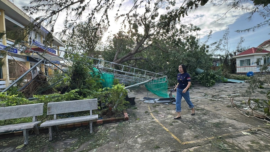 Trường THCS - THPT Võ Nguyên Giáp tại xã Xuân Cảnh tan hoang sau cơn bão - Ảnh: TRUNG TÂN |
