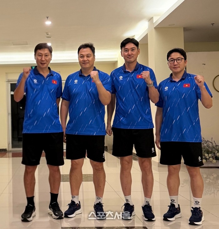 Giống như HLV Park Hang-seo trước đây, HLV Kim Sang-sik cũng không đơn độc tại Việt Nam. Bên cạnh ông là ba cộng sự người Hàn: HLV thủ môn Lee Woon-jae, trợ lý Lee Jung-soo và HLV thể lực Yoon Dong-heon.