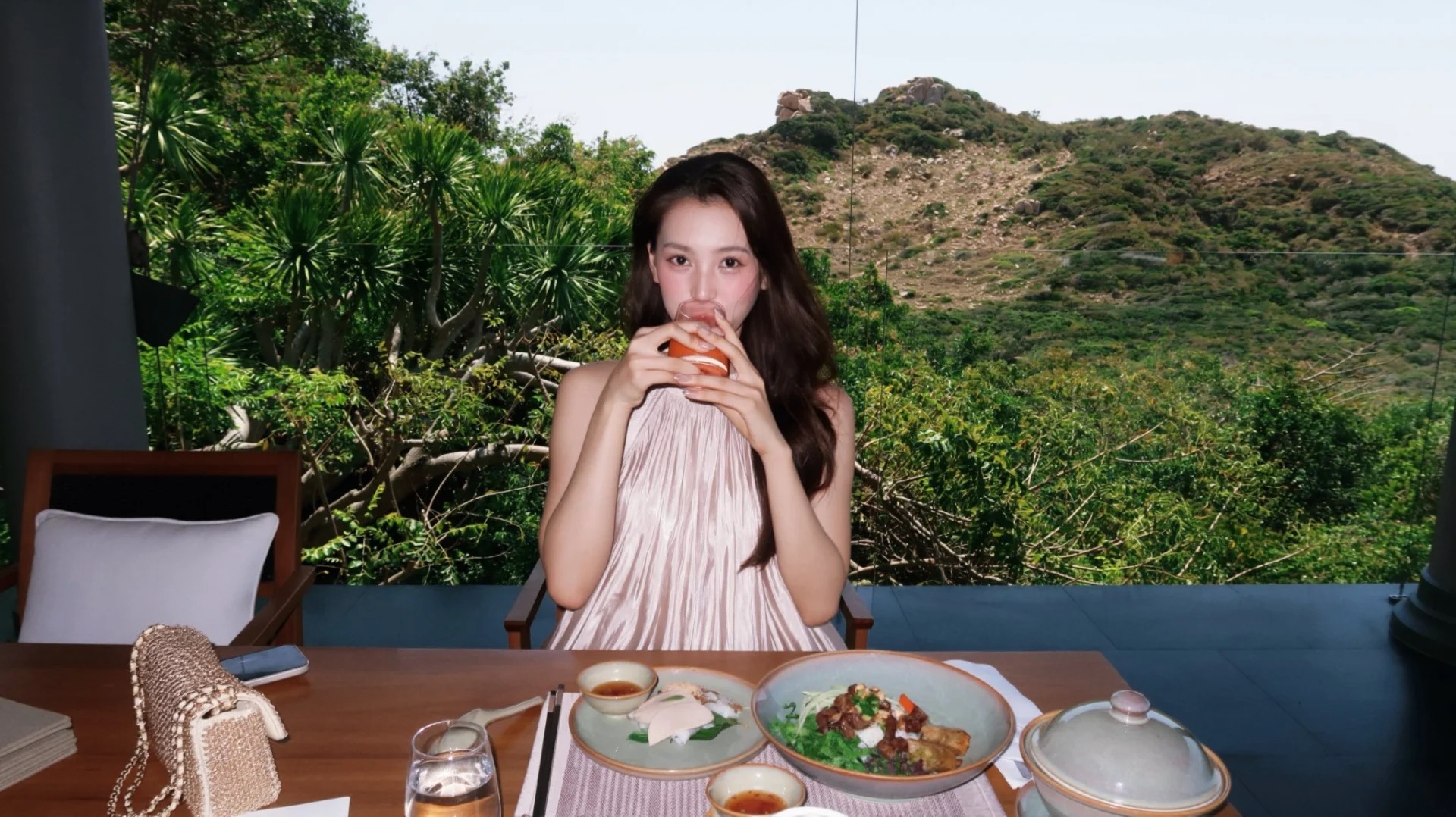 Câu chuyện càng thu hút sự quan tâm khi trùng hợp với thời điểm Tiểu Vy đăng tải hình ảnh du lịch tại một resort sang trọng ở Khánh Hòa. Trong loạt ảnh chia sẻ, cô diện trang phục nhẹ nhàng, tôn lên vẻ ngoài thanh thoát giữa không gian thiên nhiên. Những góc chụp cho thấy khu nghỉ dưỡng có thiết kế riêng tư, từ villa hướng hồ đến khu vực nhà hàng với tầm nhìn ra núi, làm dấy lên nhận định đây là một chuyến nghỉ dưỡng đắt đỏ.