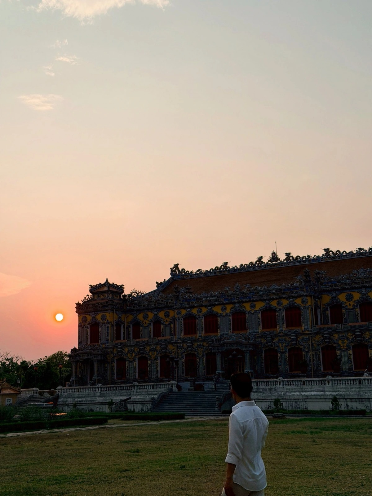 Trên trang cá nhân, ca sĩ Hòa Minzy chia sẻ loạt ảnh đi du lịch Huế. Nữ ca sĩ đội nón lá, diện trang phục màu trắng, ghé thăm Đại Nội, lăng Tự Đức, cung An Định... Con trai Hòa Minzy - bé Bo và bạn trai cô là Đại úy Thăng Văn Cương cũng xuất hiện trong loạt ảnh.