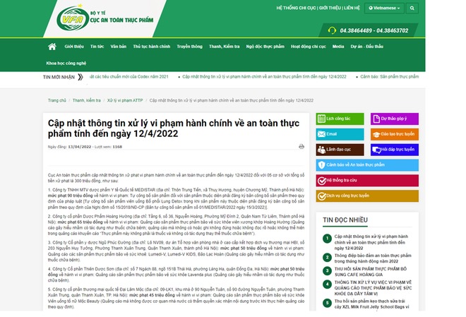 Công ty Dược phẩm Hoàng Hường từng bị Bộ Y tế "tuýt còi". Ảnh. Cục ATTP |