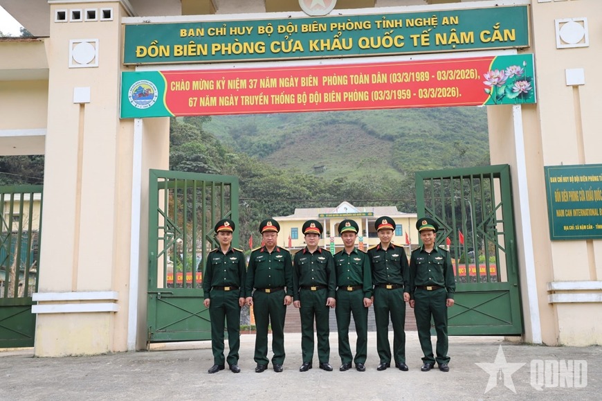 Đoàn công tác Học viện Chính trị và cán bộ Đồn Biên phòng Cửa khẩu quốc tế Nậm Cắn. |