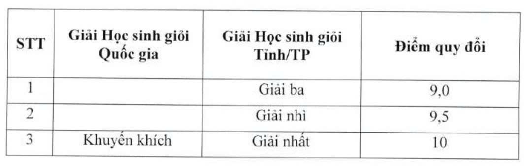 Bên cạnh đó, học viện còn quy đổi giải học sinh giỏi theo thang điểm 10. Bảng quy đổi như sau: