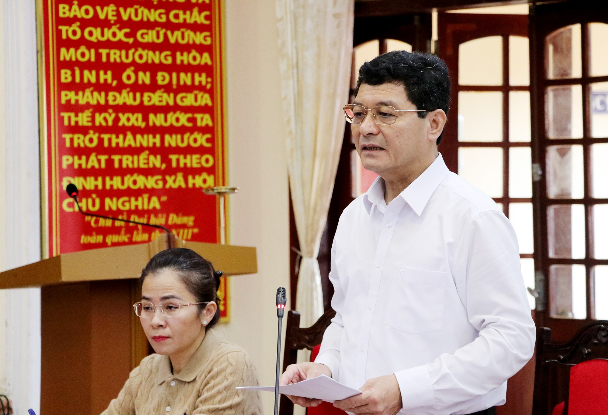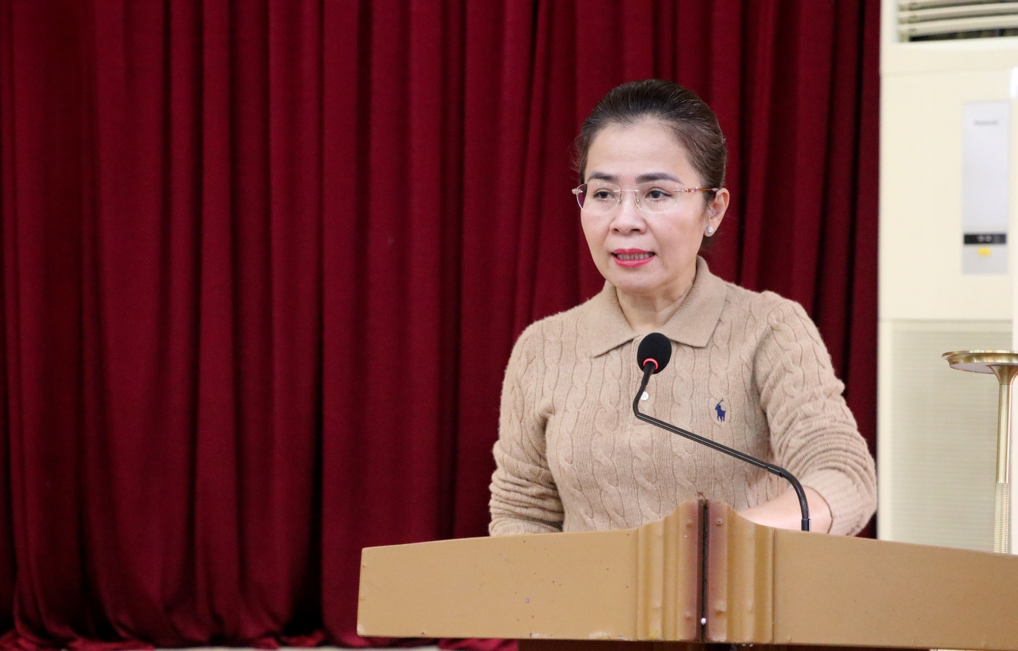 Phó Bí thư Tỉnh ủy Võ Thị Minh Sinh trình bày Báo cáo kiểm điểm công tác lãnh đạo, chỉ đạo của Ban Thường vụ Tỉnh ủy |