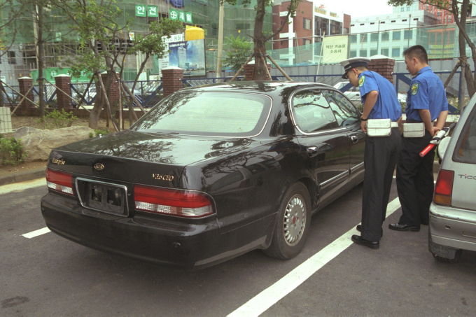 Cảnh sát kiểm tra chiếc xe bị Shin Chang-won bỏ lại. Ảnh: JoongangIlbo |
