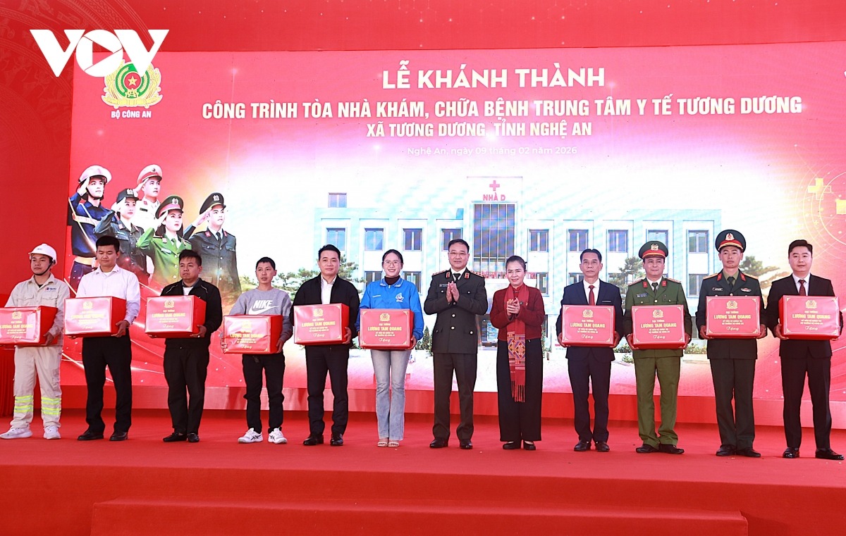 Nhân dịp này, Bộ Công an đã trao tặng 1.000 phần quà cho đồng bào, nhân dân các dân tộc xã Tương Dương; 10 suất quà của Bộ trưởng Bộ Công an tặng các tập thể có thành tích xuất sắc trong xây dựng tòa nhà khám chữa bệnh Trung tâm Y tế Tương Dương; 20 suất quà tặng các hộ gia đình chính sách tại xã Tương Dương và nhiều suất quà có ý nghĩa khác nhân dịp Tết Nguyên đán 2026; trao tặng trang thiết bị lắp đặt tại tòa nhà khám chữa bệnh Trung tâm Y tế Tương Dương. Công an tỉnh Nghệ An phối hợp Ngân hàng BIDV chi nhánh Nghệ An, Công ty TNHH Hồng Đào và Công ty TNHH Việt Phát trao 1.000 suất quà Tết tặng người dân có hoàn cảnh khó khăn trên địa bàn với tổng trị giá 500 triệu đồng.