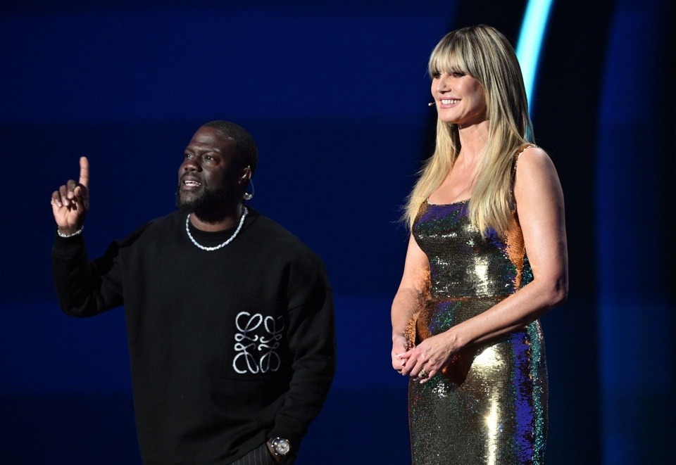 Ngay từ những phút đầu tiên, người xem cảm nhận rõ sự chắp vá. Các MC được ghép đôi một cách khó hiểu: Kevin Hart, hài hước nhưng có chiều cao khiêm tốn, và Heidi Klum, sang trọng nhưng cứng đờ, không cảm xúc. Họ đứng cạnh nhau tạo thành cặp “một thấp một cao” lạc quẻ đến mức khiến người ta nhớ lại Brit Awards 1989, một trong những lễ trao giải tệ nhất lịch sử. Cảm giác ngượng ngùng lan rộng khi cả hai không tìm được nhịp ăn ý, câu chuyện dẫn dắt rời rạc, các mảng miếng gây cười rơi vào khoảng không.