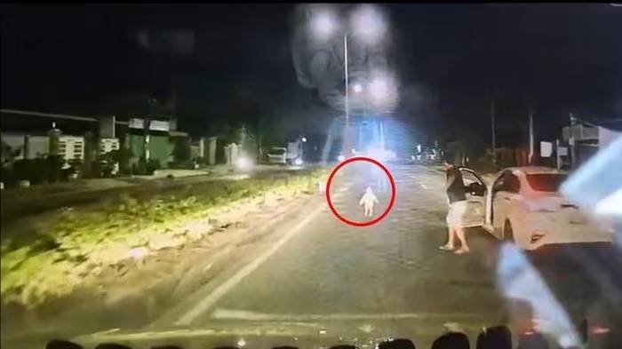 Theo hình ảnh từ camera hành trình, sự việc xảy ra vào ban đêm khi nhiều ô tô đang lưu thông trên tuyến đường. Bất ngờ, một bé gái khoảng 3 tuổi xuất hiện giữa làn xe, có dấu hiệu đi lạc và đứng ngơ ngác trước dòng phương tiện chạy với tốc độ cao.