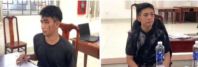 Y Ginta Byă (trái) và Lê Hồng Hiền tại cơ quan công an - Ảnh: SỸ ĐỨC |
