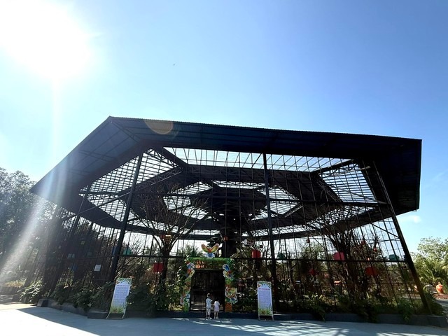 Lồng chim mở “siêu lớn” tại Vườn thú Đại Nam nhìn từ phía ngoài. |