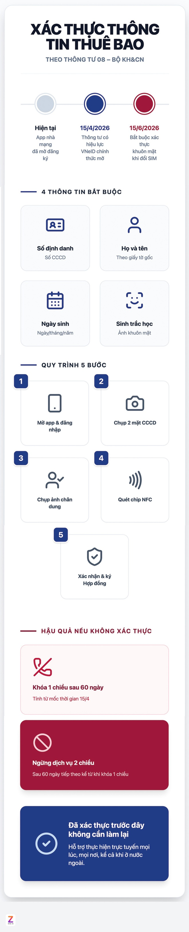 Ngày 31/3. Bộ Khoa học và Công nghệ ban hành quy định mới nằm trong Thông tư 08/2026, nhằm siết lại tình trạng SIM không chính chủ. Đây là nguyên nhân quan trọng dẫn đến tin nhắn rác, cuộc gọi rác và nhiều hành vi lừa đảo thời gian qua. Từ mốc 15/4, người dùng có thể tự xác nhận số điện thoại bản thân sở hữu thông qua ứng dụng VNeID. Trước đó, dịch vụ này do phía nhà mạng cung cấp.