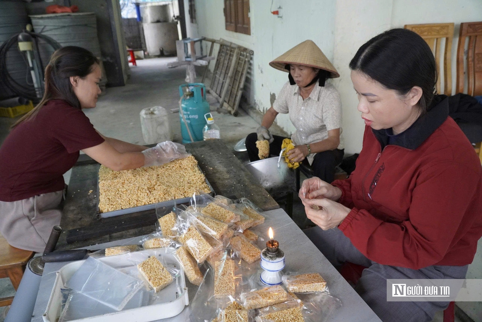 "Khi đun mật, người thợ phải liên tục đảo tay, giữ lửa vừa đủ để mật chuyển màu cánh gián đẹp mắt và không bị khét. Khi trộn cốm, tay thợ phải nhanh, phải đều để hạt cốm thấm mật vừa vặn, không quá khô mà cũng không quá ướt. Tất cả những thao tác ấy không có công thức cố định, chỉ có kinh nghiệm và sự cảm nhận của người lành nghề", chị Huệ nói.