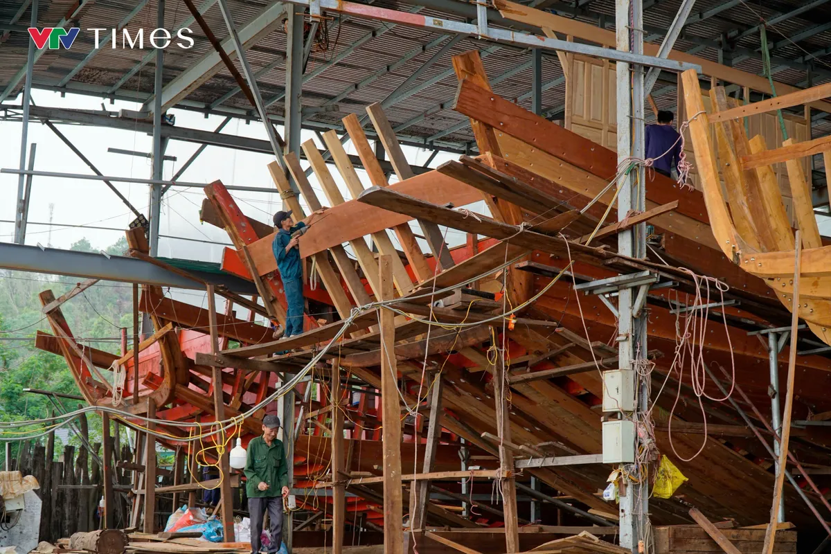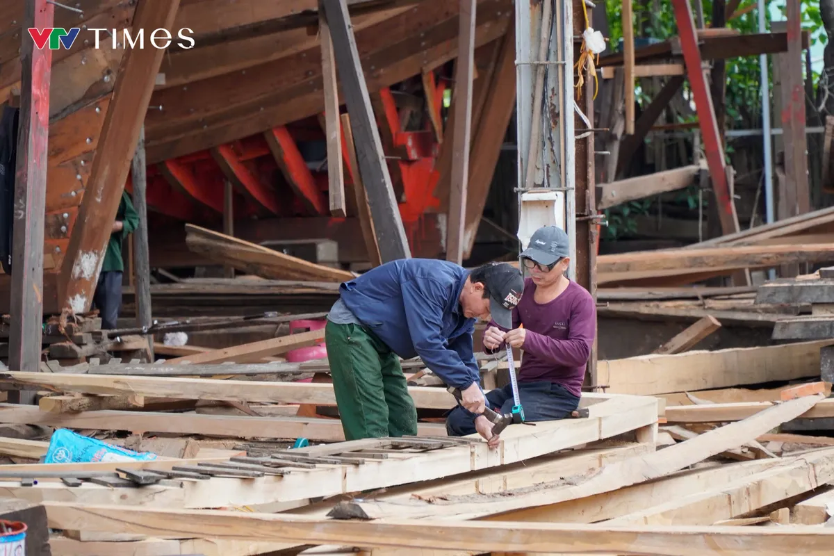 Hơn ba thập kỷ gắn bó với nghề, vậy nên ánh mắt ông dừng lại ở từng mối ghép, từng đường cong của những tấm ván gỗ vừa được uốn, như thể đang "soi" từng chi tiết nhỏ để giữ cho con tàu đạt đến độ chuẩn xác cao nhất.