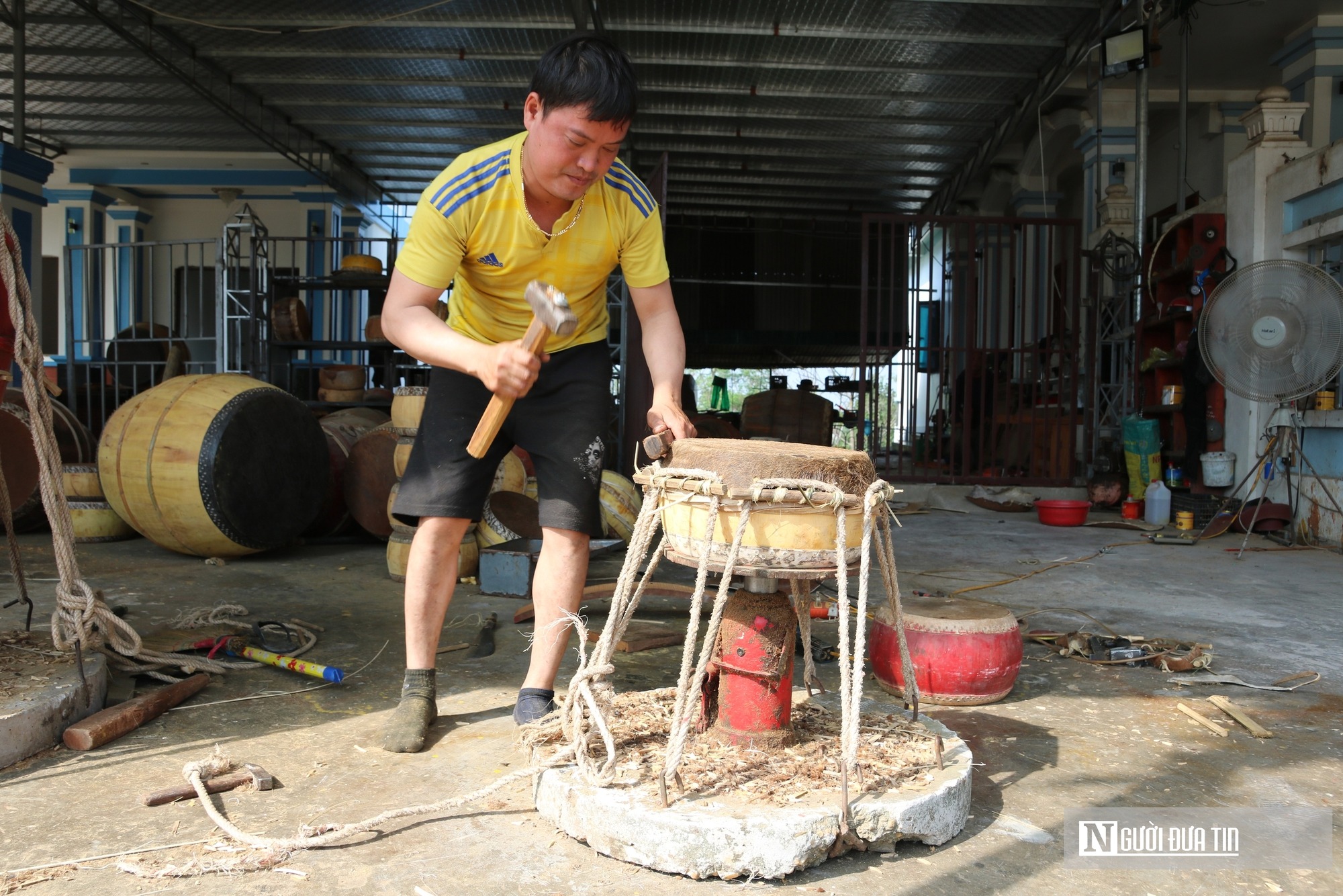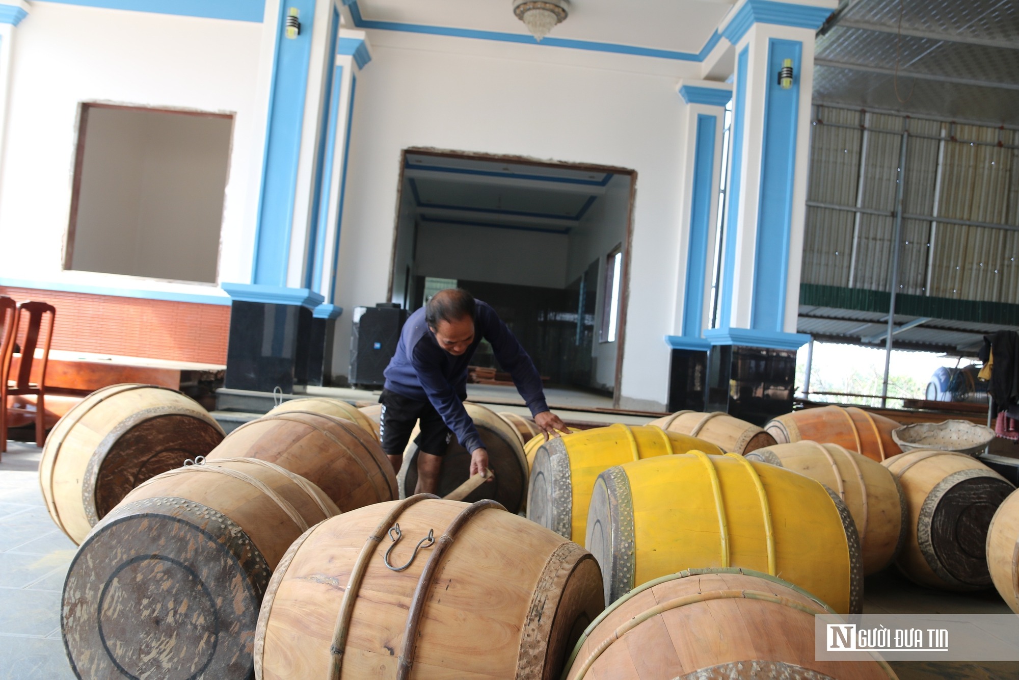 Cơ sở sản xuất của ông Phan Văn Cư (SN 1963) là một trong những cơ sở sản xuất trống da lớn nhất xã Đại Đồng. “Nghề làm trống da này có nguồn gốc xã Hưng Tây, huyện Hưng Nguyên cũ, tỉnh Nghệ An, đến nay đã trải qua nhiều đời. Mỗi cơ sở làm nghề đều có bí quyết riêng. Nghề này chúng tôi làm quanh năm nhưng dịp gần Tết nhận được nhiều đơn đặt hàng nhất. Bởi vì các lễ hội lớn hầu hết được tổ chức vào dịp Tết và đầu Xuân. Những ngày này, xưởng của tôi phải hoạt động hết công suất để kịp cung ứng cho khách hàng”, ông Cư chia sẻ. |