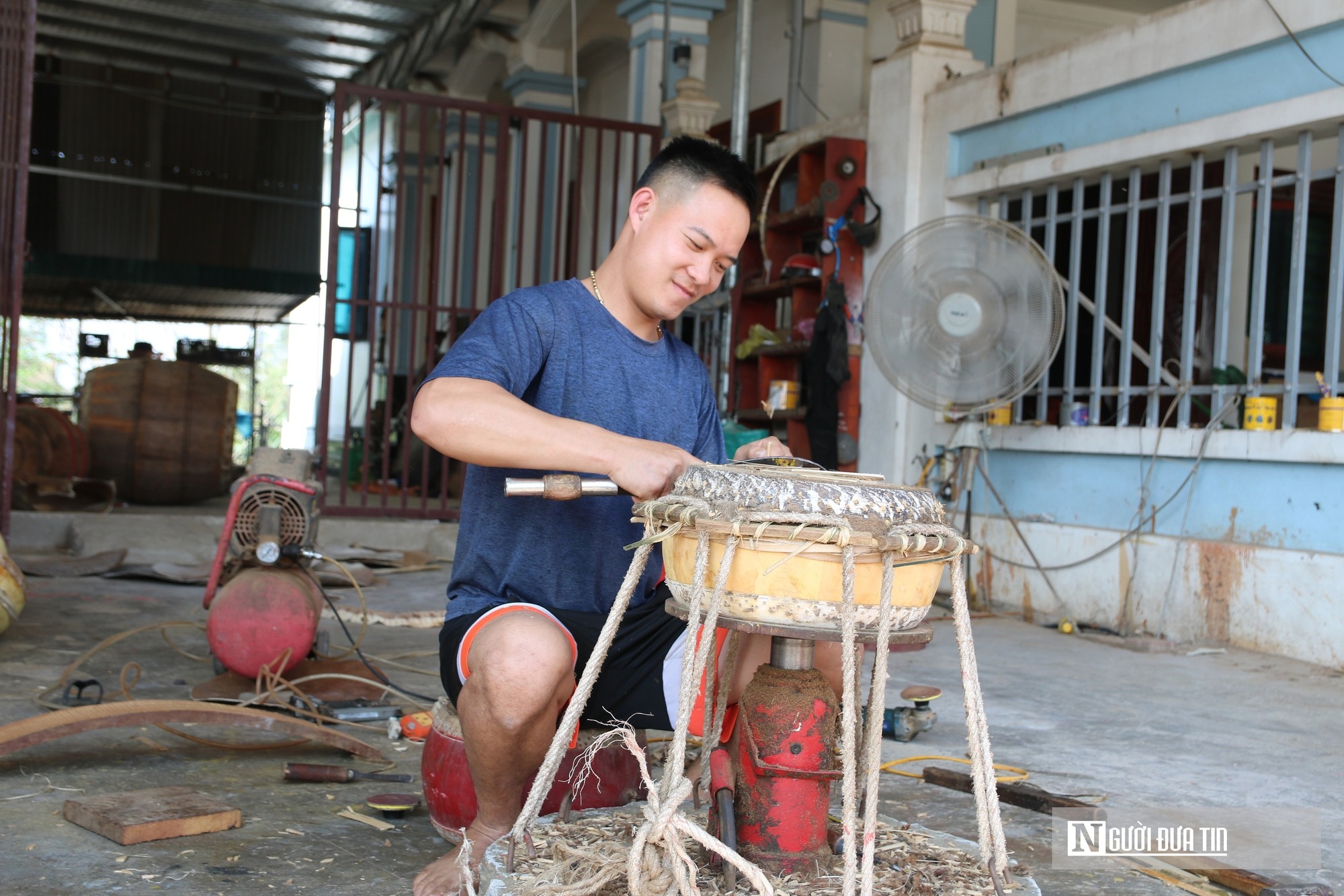Mỗi công đoạn làm trống đều không hề đơn giản, đòi hỏi người thợ phải cẩn thận, tỉ mỉ, đôi tay khéo léo mới tạo ra được một chiếc trống đạt chuẩn. |
