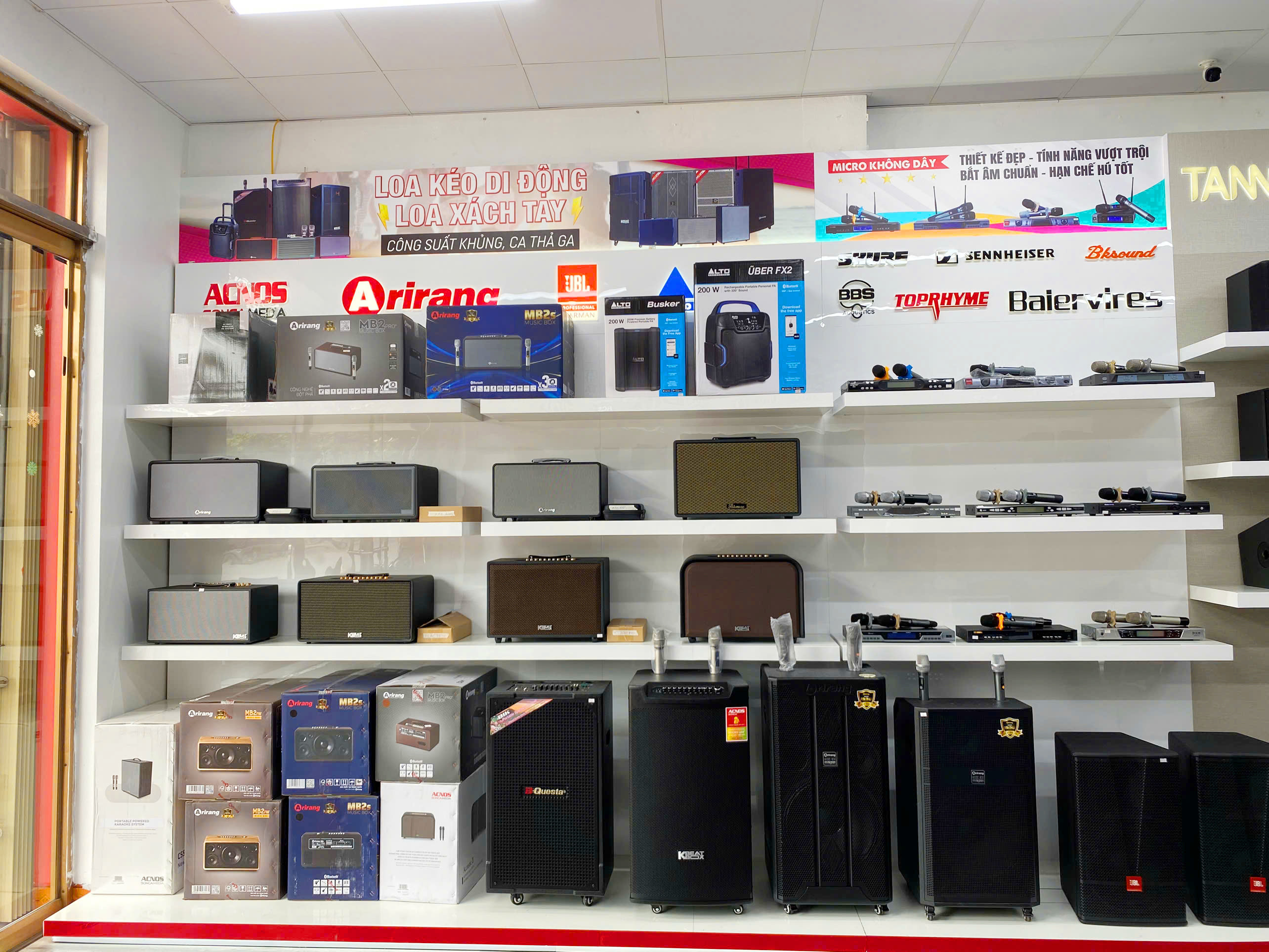 Tại mỗi showroom, khách hàng luôn được đội ngũ tư vấn viên am hiểu kỹ thuật hỗ trợ tận tình, giúp lựa chọn đúng sản phẩm phù hợp nhu cầu và ngân sách. Hệ thống trưng bày chuyên nghiệp giúp khách hàng trải nghiệm thực tế nhiều mẫu loa karaoke, loa kéo và dàn âm thanh trước khi quyết định, đảm bảo sự hài lòng tuyệt đối.
