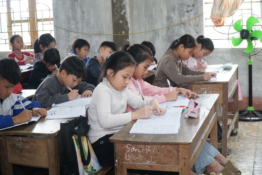 Buổi sáng cuối tuần, trời mưa phùn nhẹ và rét ngọt, nhưng trong lớp học ở Trường THCS Nam Cường cũ (Thiên Nhẫn, Nghệ An) vẫn có gần 30 học sinh lớp 5 sôi nổi học bài. Tiếng đồng thanh trả lời câu hỏi của cô giáo, những cánh tay thi nhau xung phong lên bảng giải toán, và cả những lời nhắc nhở bạn khi làm sai phép nhân chia… tất cả tạo nên một không khí học tập vừa nghiêm túc, vừa thân thiện.