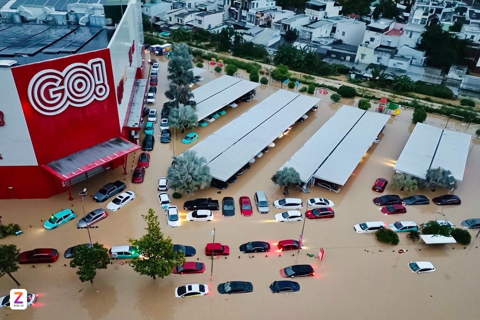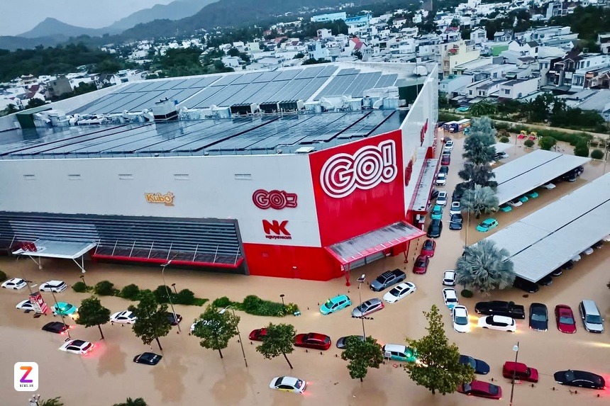 Siêu thị Go tại phường Nha Trang ngập nặng. Nhiều ôtô đậu nhờ ngập trôi la liệt. Ảnh: Đức Lợi. |