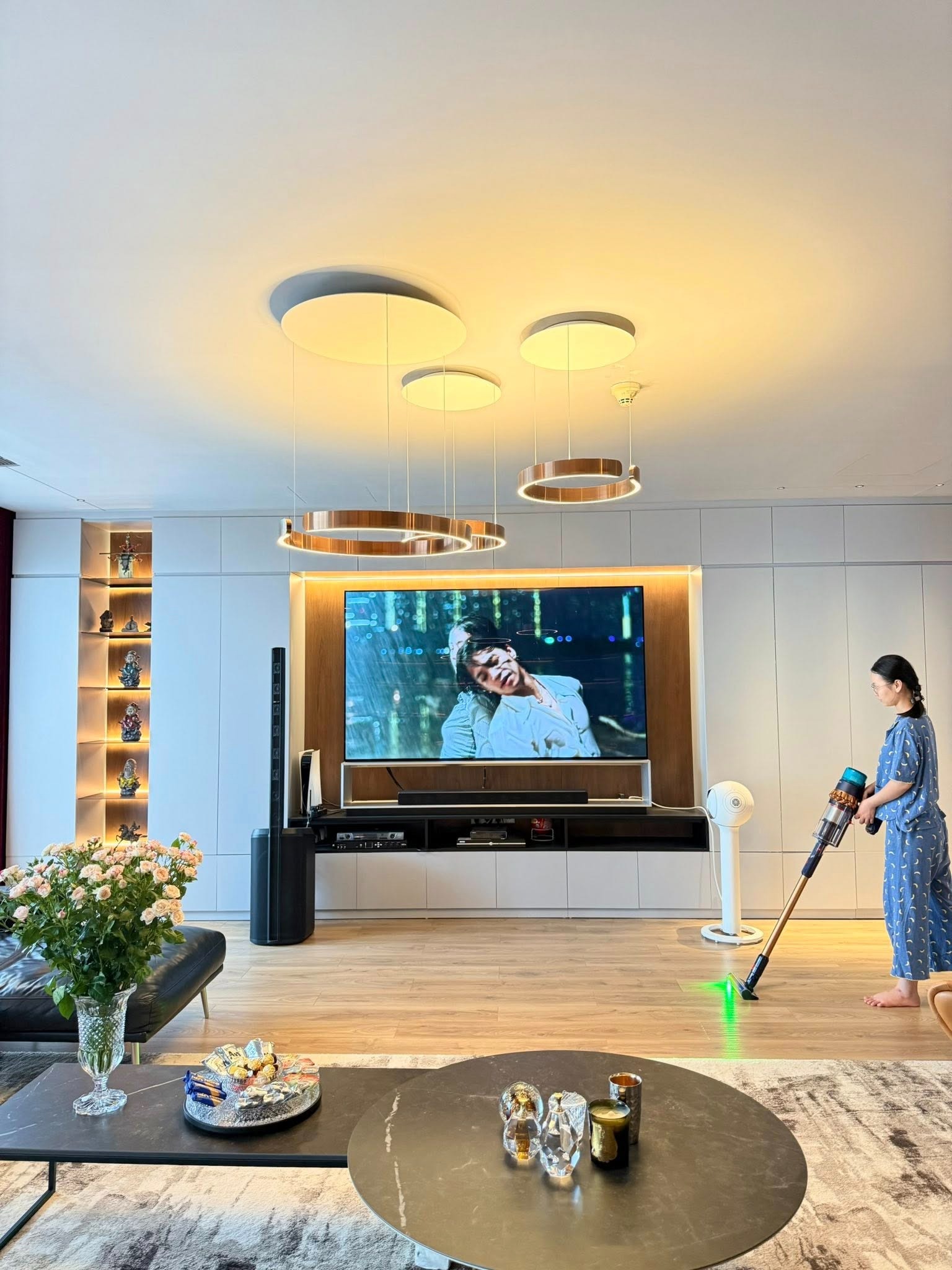 Toàn bộ căn penthouse được tích hợp hệ thống “nhà thông minh”, cho phép điều khiển nhiều thiết bị qua ứng dụng. Tuy nhiên, điều khiến không gian này trở nên khác biệt lại là những chi tiết rất đời: một bàn ăn đủ lớn cho những buổi tụ họp, góc trưng bày kỷ niệm nghề nghiệp, hay việc ưu tiên không gian cho con cái vui chơi. Đó không chỉ là nơi để ở, mà là nơi để sống, đúng nghĩa.