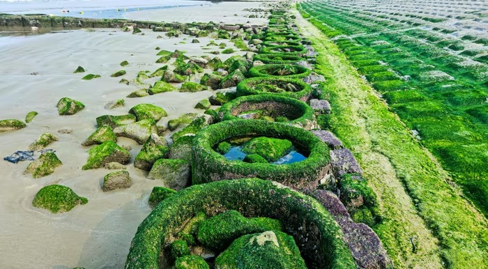 Thời điểm rêu lộ rõ nhất là khi thủy triều rút sâu, thường vào sáng sớm hoặc chiều muộn, khi ánh sáng thuận lợi cho quan sát và chụp ảnh. Ảnh: Cẩm Kỳ |