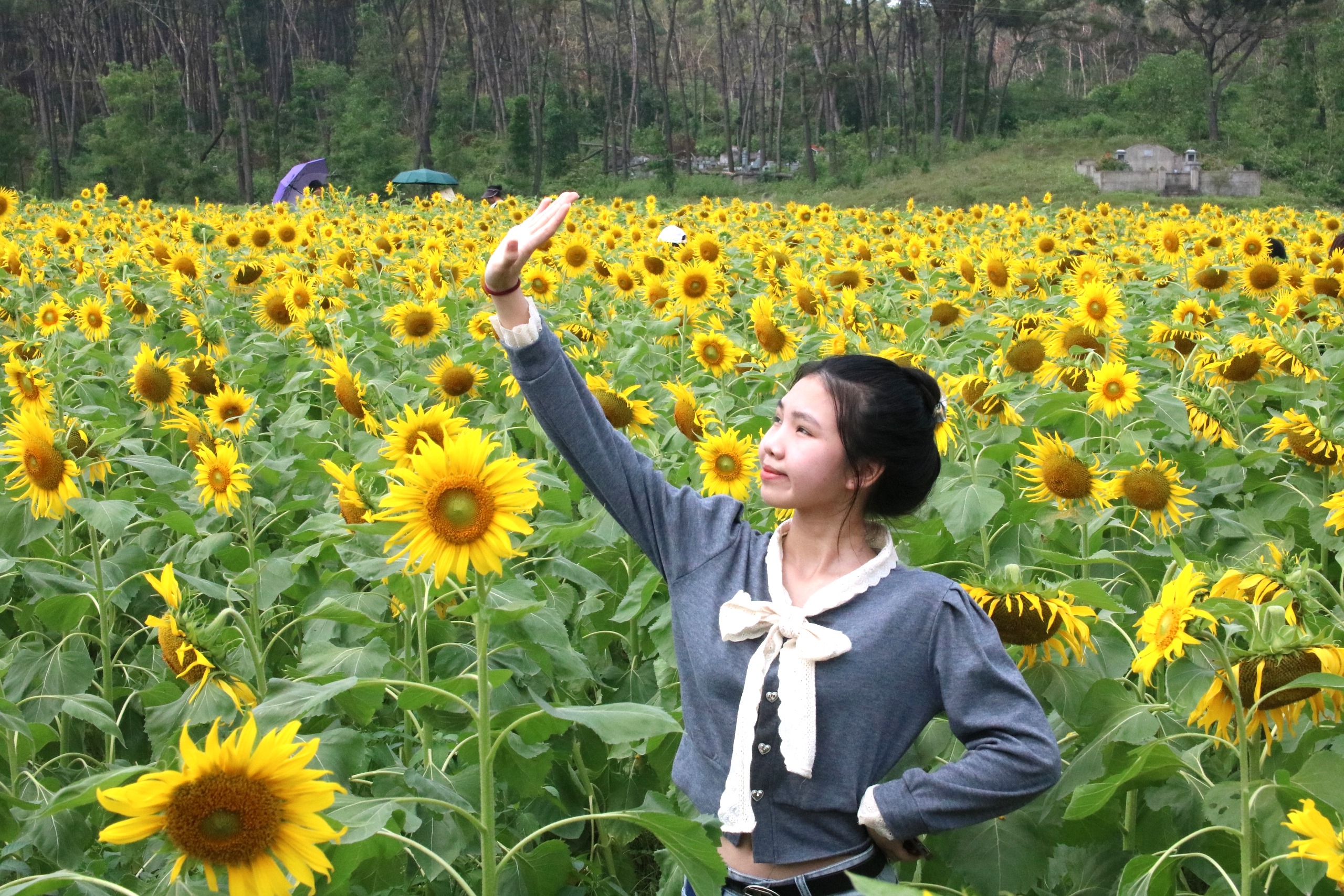 Nhiều người diện áo dài thướt tha để chụp ảnh với vườn hoa hướng dương tạo nên những điểm nhấn đặc biệt. |