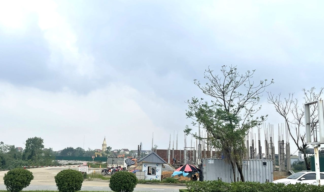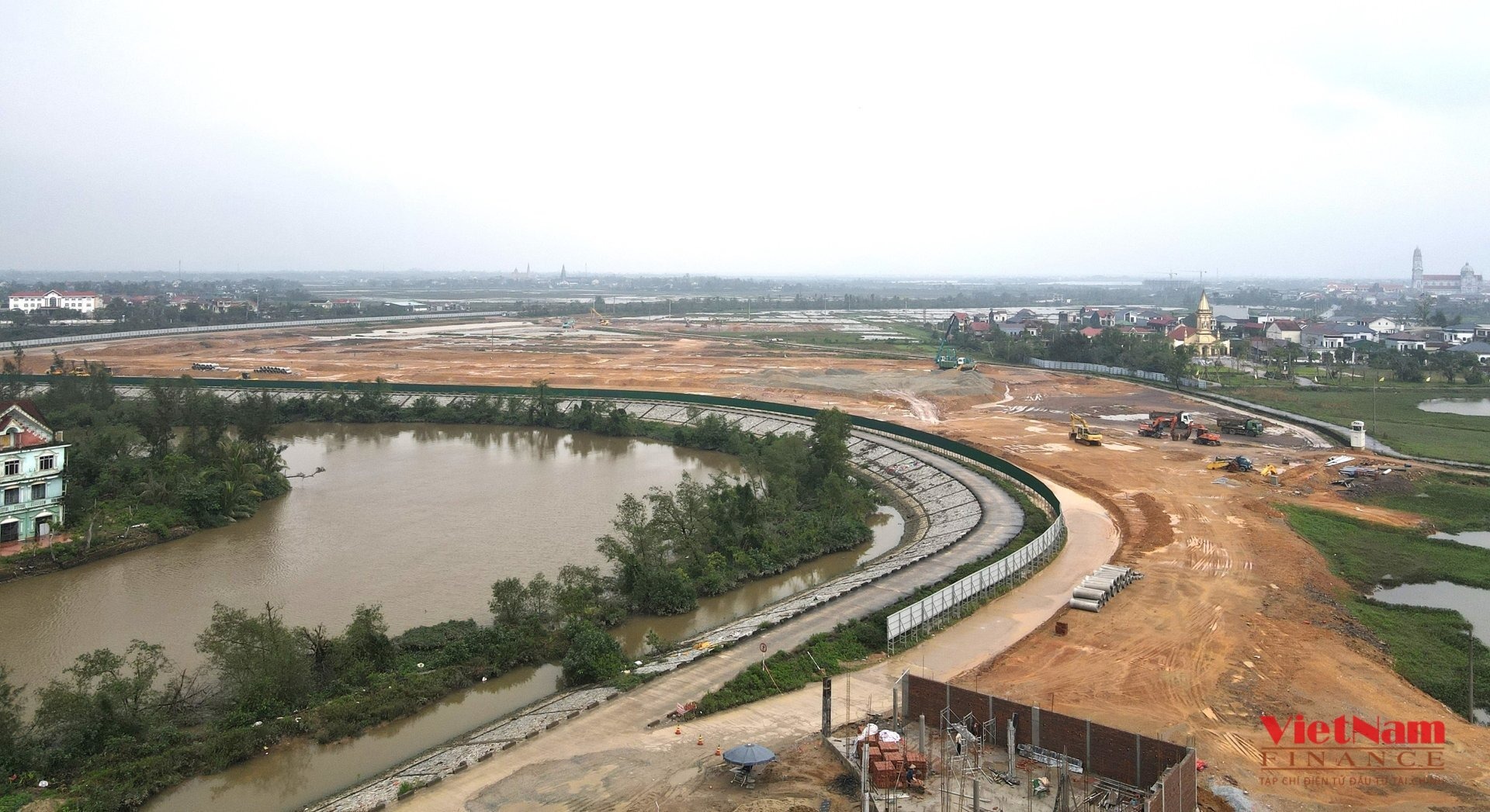 Toàn cảnh khu vực dự án Khu đô thị Thạch Trung – Thạch Hà đang san lấp mặt bằng, chuẩn bị hạ tầng kỹ thuật. |