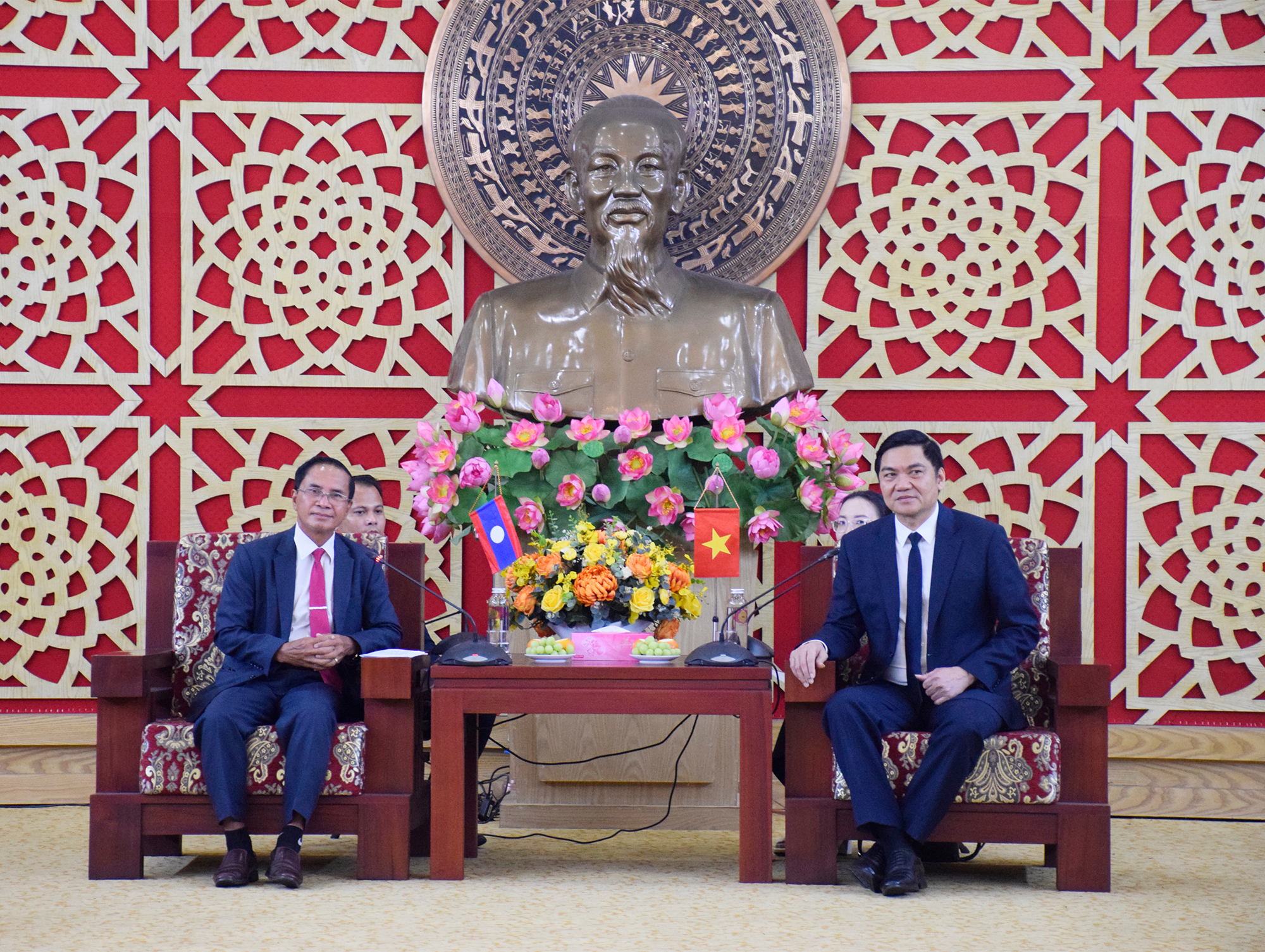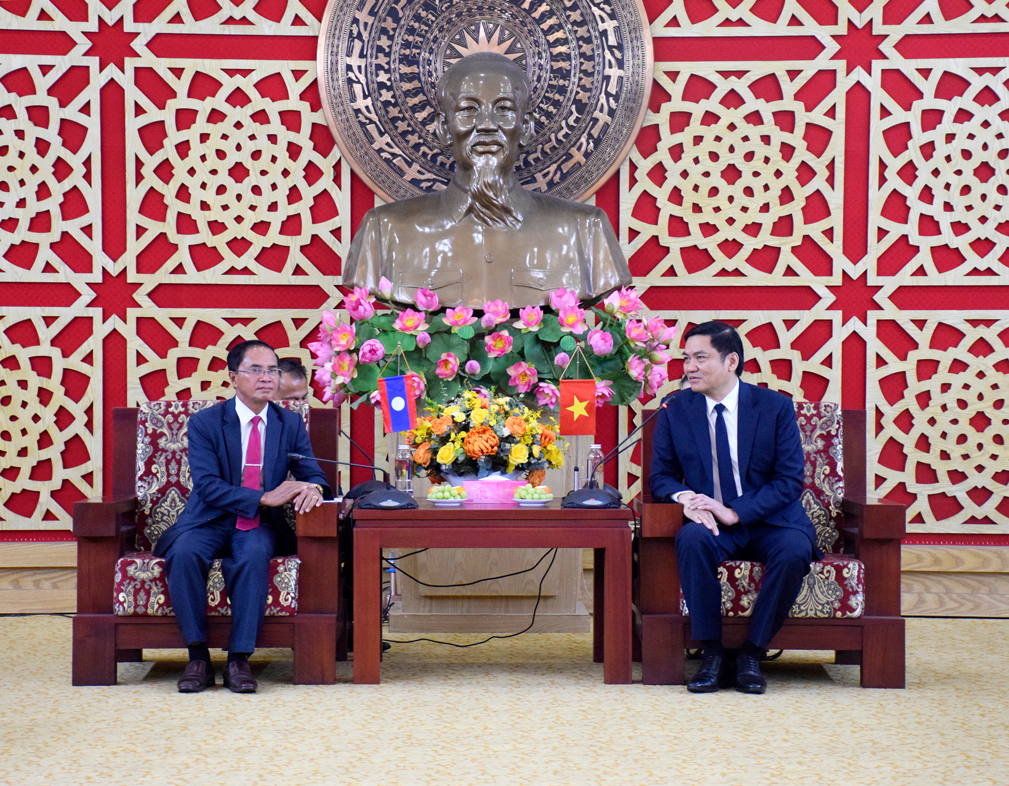 Chủ tịch HĐND tỉnh Salavan chia sẻ đã từng tới thăm Nghệ An vào 20 năm trước khi ở cương vị Bí thư Tỉnh đoàn. Đồng chí bày tỏ ấn tượng sâu sắc trước sự phát triển nhanh chóng của tỉnh Nghệ An trong thời gian qua.