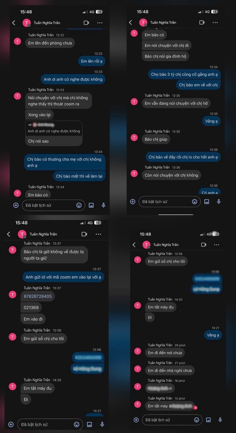 Đoạn chat đối tượng lừa đảo dàn dựng màn “bắt cóc online” để tống tiền. (Nguồn Bộ Công an)