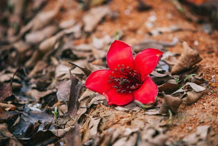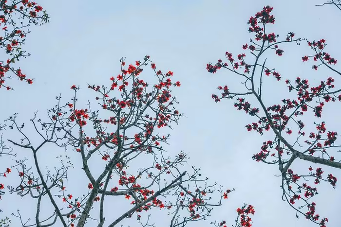 Hoa gạo còn được gọi là hoa mộc miên. Hoa có 5 cánh, màu sắc đỏ thắm. Loài hoa này bắt đầu nở từ đầu tháng 3 và kéo dài đến giữa tháng 4. |