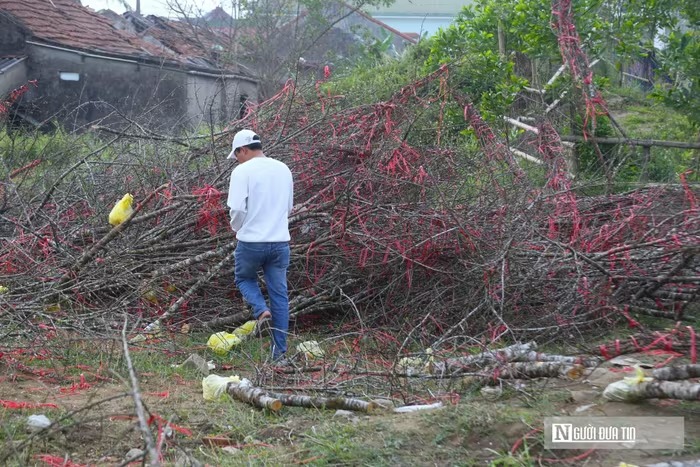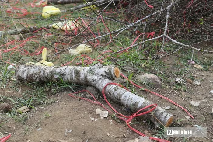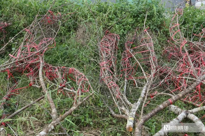 Những cành đào bị tiểu thương ném lại trên đường phố ngày cuối cùng của năm |